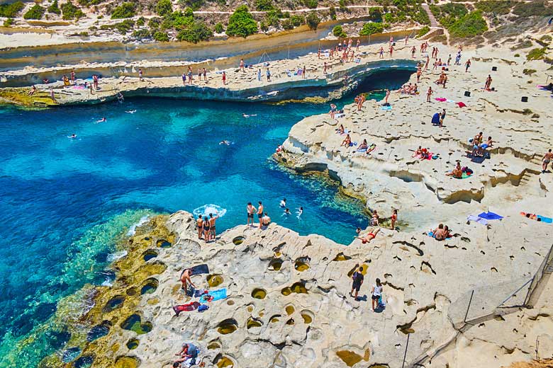 However, if you're keen to avoid the crowds, head a little further to the swimming hole at Il-Kalanka Bay, although the platform for jumping into the water here is higher than at St Peter's, so best reserved for the confident.