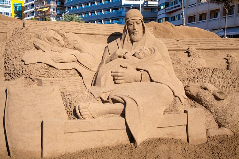 Christmas is celebrated in a number of ways across the five main islands. Las Canteras Beach in Las Palmas Gran Canaria sees one of the world's largest nativity scenes sculpted out of sand, while over in Tenerife, the capital Santa Cruz puts on regular Christmas carols and concerts under the stars.