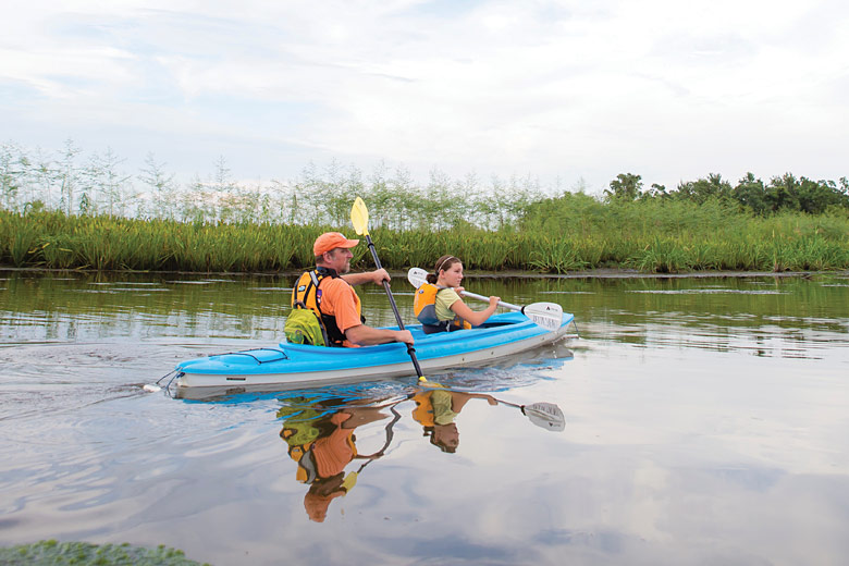 The most northerly tip of Mobile Bay is home to the Five Rivers Delta, where WildNative Tours leads excursions on single or two-man kayaks all year round.
