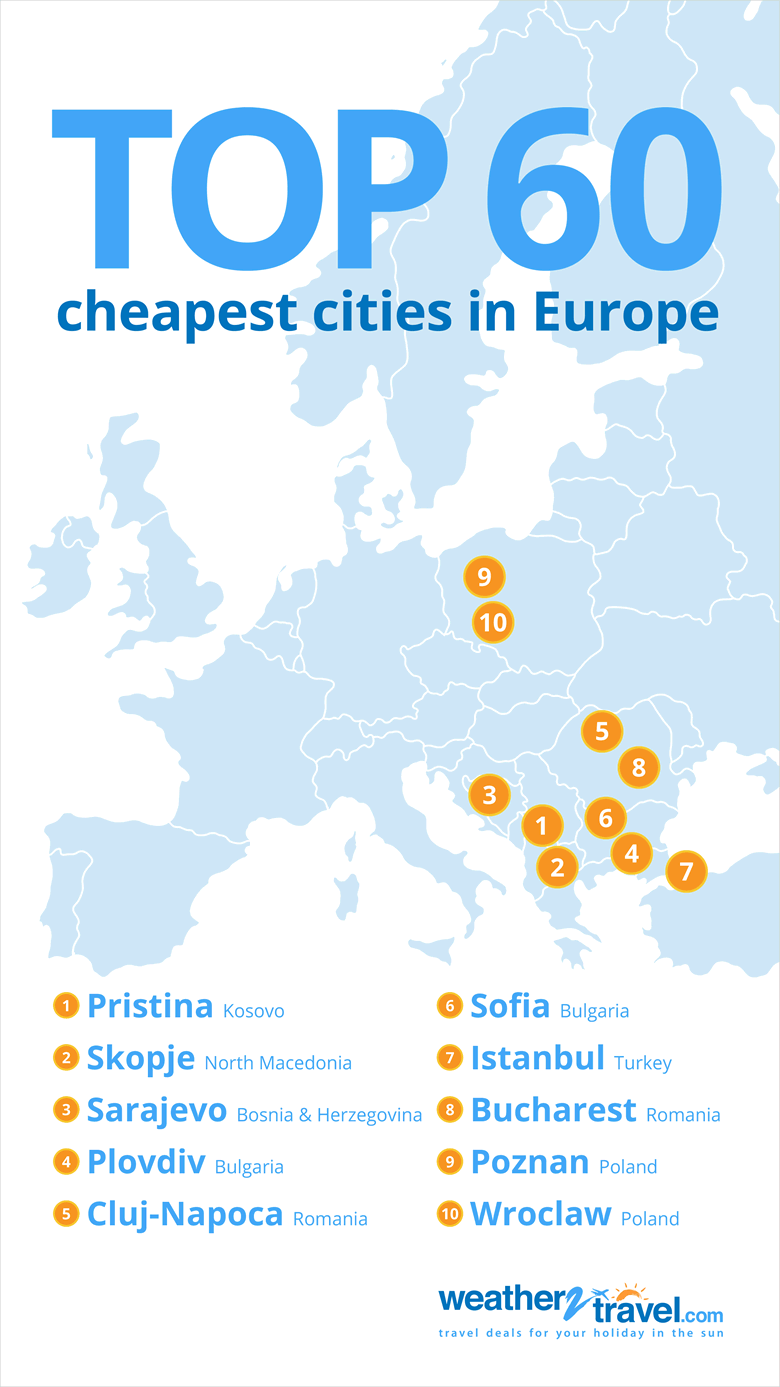 Check out our Cheapest cities in Europe to visit in 2026/2027 infographic to see where the top 60 cities are located on the map.