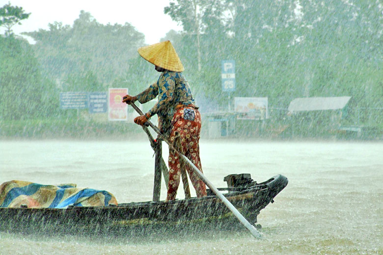 The amount of water vapour that a cloud can contain - and therefore the amount of rain that will fall - depends on the air temperature: the higher the temperature, the more water vapour.